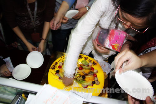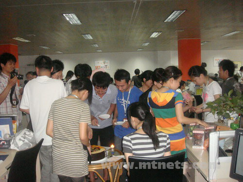 在生日歌的伴隨下,6月生日的員工走到蛋糕桌前,滿面笑容的接過公司精心準備的生日禮物,與同月出生的同事一起切開生日蛋糕,幸
