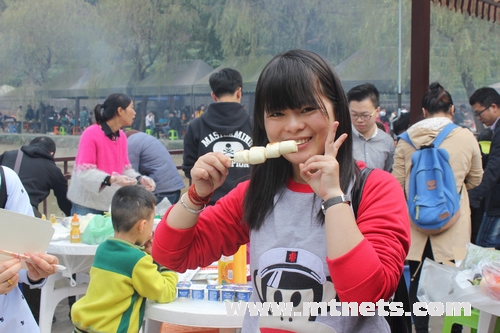 游戲后已到中午,大家開始了燒烤大行動。紛紛去領(lǐng)取了大批量的飲料、葷素食材、調(diào)料、色拉油和錫紙。分為五組的我們,協(xié)力合作,開始了廚藝大比拼。頃刻間,燒烤攤周邊白煙滾滾,飄香四溢。