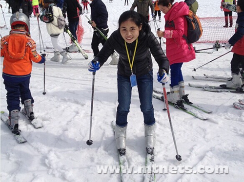 這位擺出一副“標準滑雪姿勢”的女士,正是我們的銷售花花。看這架勢,是有能力從山頂滑到山底不摔跤的呀,大家好好學習學習,不過摔了,花花可不負責的。