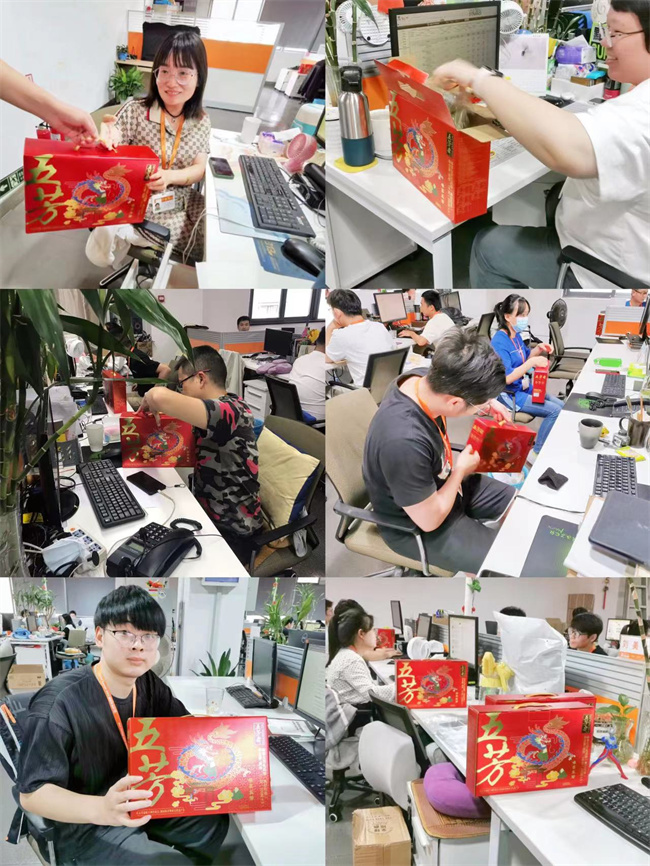 一箱箱飽含著關(guān)愛和祝福的端午禮盒“奔赴”到各個崗位,傳遞到每一名員工手中,公司上下洋溢在一片溫馨和諧的喜慶氣氛中。