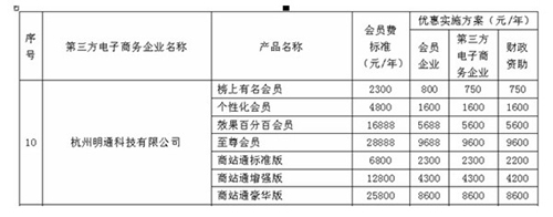 市政府3000萬/年的專項資金開展電子商務進企業項目,杭州市經委委托了14家第三方電子商務平臺進行申報工作,明通科技就是14家之一,負責通知企業進行申報,協助企業開展電子商務應用。 享受杭州明通科技以下服務可獲得政府資金支持: