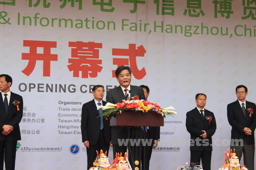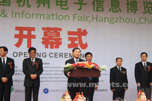 4月21日,以“綠能.生活.信息”為主軸的第五屆中國杭州電子信息博覽會在浙江世貿展覽中心拉開帷幕。國家工信部副部長楊學山,副省長毛光烈,杭州市市長邵占維,省經信委主任謝力群等領導出席了開幕式,副市長佟桂莉主持。