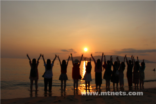 睡了3個(gè)小時(shí)以后,睡眼朦朧,披頭散發(fā),就同他們一起去酒店餐廳吃早飯。打開(kāi)門(mén),濃郁的異國(guó)風(fēng)味撲面而來(lái),燦爛的陽(yáng)光,穿著背心短褲的老外,還有純正的越南音樂(lè),心情都變得很棒。吃完豐盛的早餐,本打算吃回去睡個(gè)回籠覺(jué),卻被苗姐(技術(shù)部胡苗,大姐大,我們都這么叫她)拽起來(lái)去看海,她永遠(yuǎn)都有使不完的力氣,她會(huì)在你疲倦的準(zhǔn)備躺下的時(shí)候瘋狂敲響你的房門(mén),喊你一起出去玩,沒(méi)有一點(diǎn)點(diǎn)防備。也因?yàn)橛辛怂@一次旅行多了很多的歡聲笑語(yǔ)。