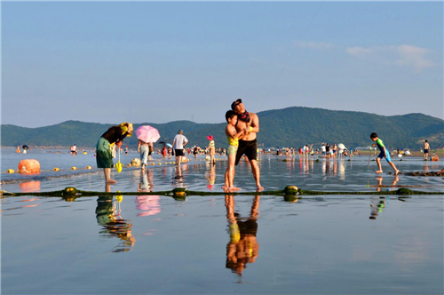鹿欄晴沙全長(zhǎng)3.6公里,沙灘呈南北走向,東西寬300米,是江浙沿海最長(zhǎng)一條沙灘,沙灘坡平,縱寬大,百米外才及胸,漲潮時(shí)浪大,回聲響徹,氣勢(shì)宏偉,退潮時(shí)潮水平靜、安寧。沙色呈鐵灰色,沙質(zhì)細(xì)膩偏硬,沙灘上可行駛汽車,被冠以“萬(wàn)步鐵板沙”美稱,也是浙東的天空之境。
