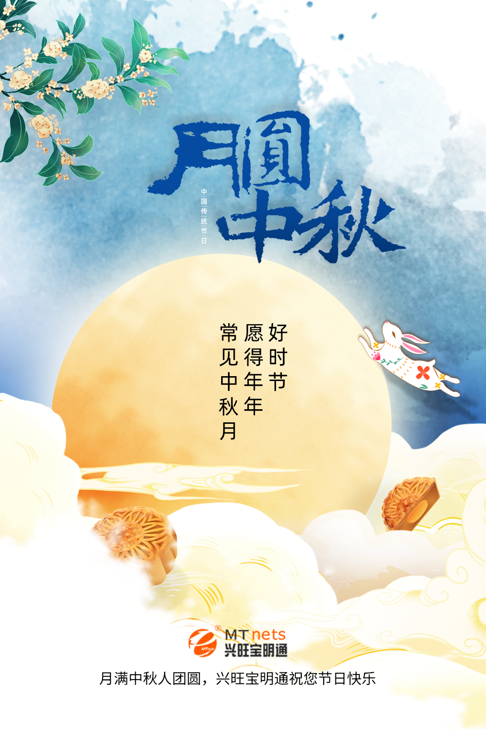 皓月當空,桂香四溢,我們迎來了中華民族的傳統佳節——中秋節。在這個象征團圓、寄托思念的美好日子里,浙江興旺寶明通網絡有限公司向每一位在崗位上默默奉獻、與公司同舟共濟的員工致以最溫暖的中秋祝福:愿您中秋快樂,幸福安康,闔家團圓!