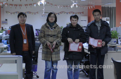 09年1月13日,明通科技08年12月頒獎大會為2008年畫上完美句號。大會對12月份新業務PK勝出網站進行表彰和獎勵,個人銷售業績再創新高。緣于公司推行的培訓機制,新進人員的破零記錄也有了新的突破。最后一個月充滿了拼搏與沖刺的氛圍,無論是團隊還是個人均取得了可喜的成績,08年的銷售目標圓滿完成。各個部門表現優秀,技術部積極探索、開拓創新尤為突出。
